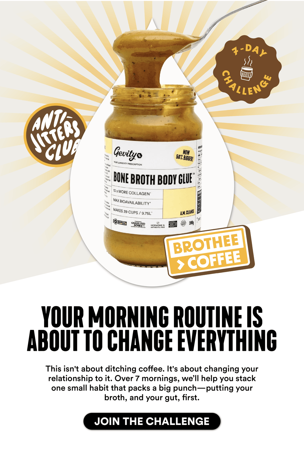 Buy your favourite Bone Broth Body Glue Concentrate (and score a free limited edition Brothee Before Coffee mug at participating retailers).