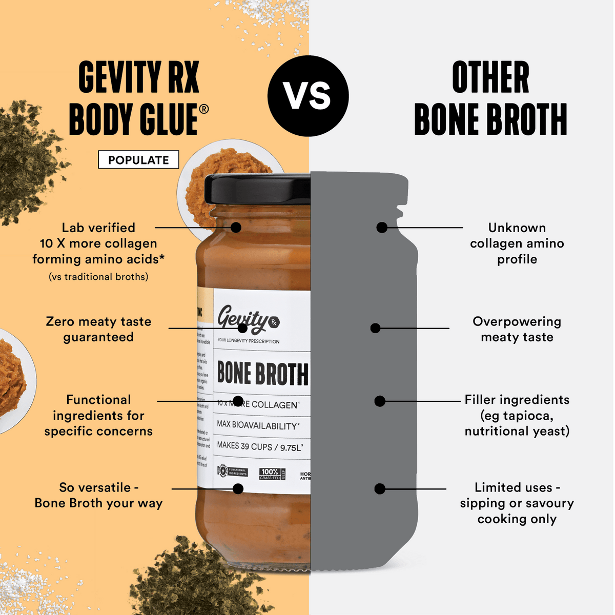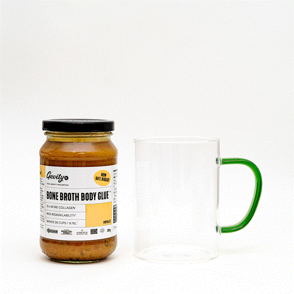 Simply add 1 tsp or more to a cup of hot water and flavour as desired for an instant gut healing drink.